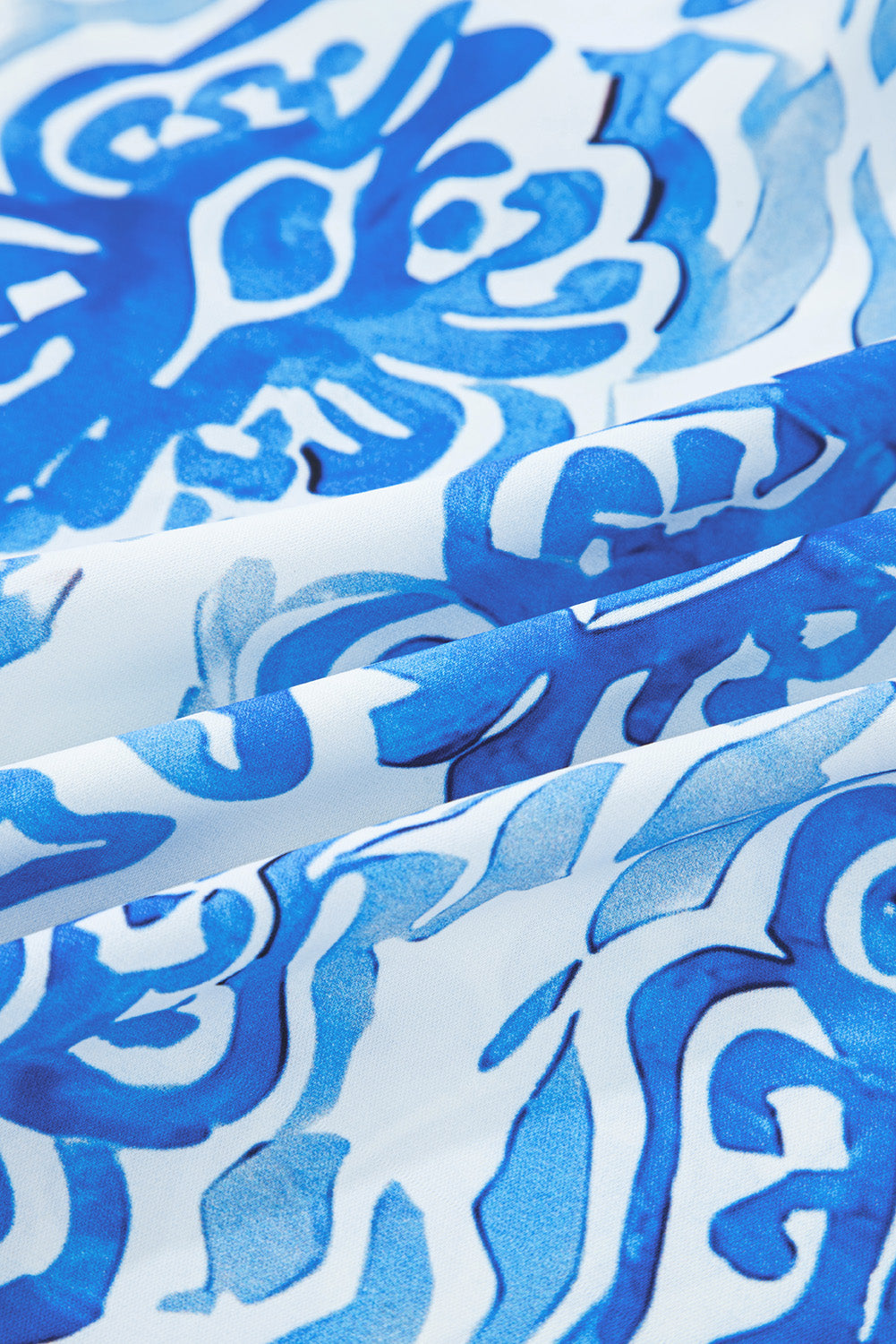Abstract Tie-Neck Button- Up Puff Sleeve Shirt