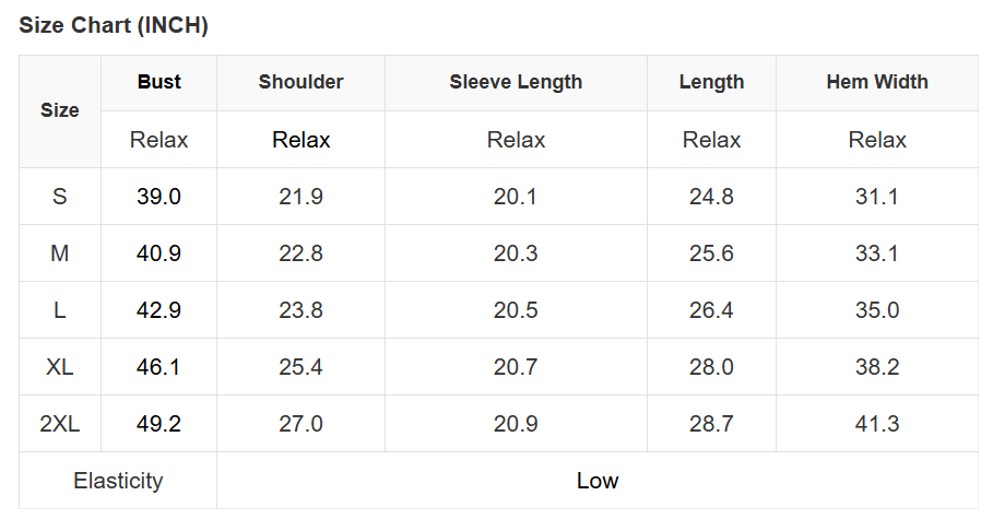 Size Info: See size chart for approximate measurements